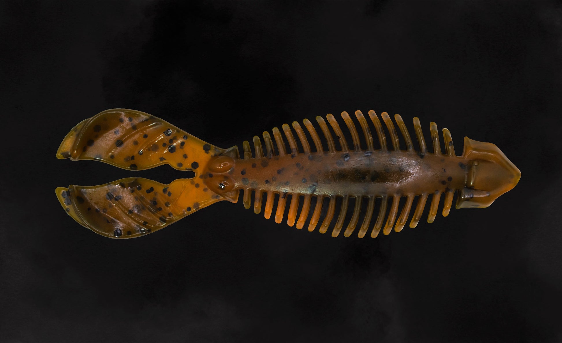 The Craw Gill's hybrid design is a perfect combination of profile and action. Not only does it mimic a crayfish, but it’s wider profile perfectly imitates a small bluegill. The Craw Gill's appendages produce a dynamic swimming action while its deeply ribbed body creates vibration and maximum water displacement. Designed with a custom hook keeper on the head for durability the Craw Gill is perfect for pitching and flipping into cover as well as being an amazing jig trailer.