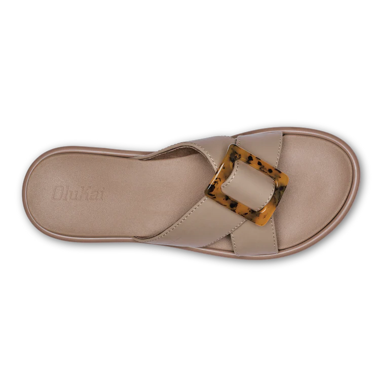 Tortoise Shell Buckle: Introducing our first sandal with an embellishment, the La'i Slide features a chic tortoise shell buckle.